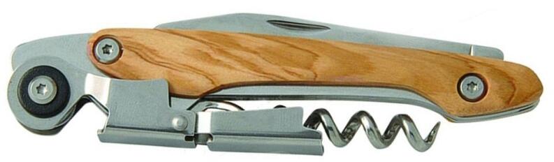 Schönes Kellnermesser aus Edelstahl und Olivenholz. Ausgestattet mit Doppelhebel, Korkenzieher, Flaschenöffner und und Messer. Der formschöne Olivenholzgriff liegt gut in der Hand für Natur- und Outdoorfreunde.