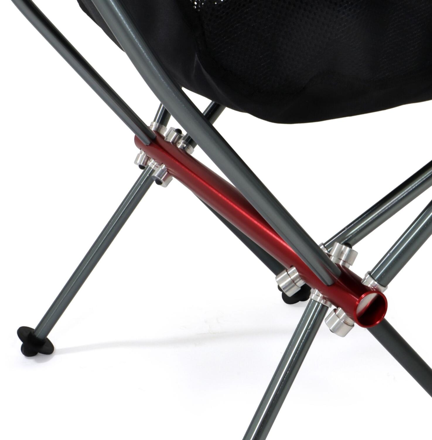 Sehr leichter und kompakter Faltstuhl mit einer hohen Rückenlehne, Armlehnen, aus sehr leichtem Aluminiumgestell und stabilem Oxford Stoff. Eine Armlehne ist ausgestattet mit einem Getränkehalter, der sowohl an der rechten als auch an der linken Seite angebracht werden kann. Das Netzgewebe an der seitlichen Sitzfläche, sorgt für eine gute Belüftung. Die im Lieferumfang enthaltene Tragetasche lässt sich zur praktischen Aufbewahrung von Accessoires verwenden.