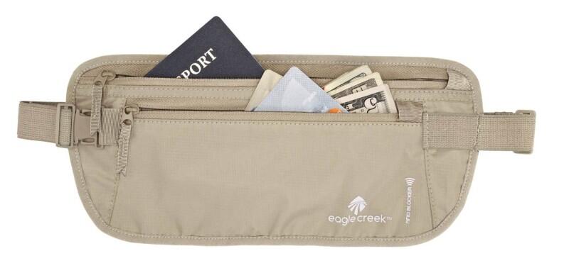Die Modelle der Undercover-Serie von Eagle Creek tragen kaum auf, so dass sie von aussen kaum sichtbar sind. Die Geldgürtel bzw. Dokumentengürtel können direkt auf der Haut getragen werden, da die Rückseite der Modelle ein sehr angenehmen Bezug haben. Der Geldgürtel Money Belt RFID DXL sollte auf keiner Reise fehlen. In vielen Hotels ist kein Safe vorhanden, sodaß Sie gezwungen sind Ihre Reisedokumente und Ihr Geld am Leib zu tragen. Tragen Sie den Geldgürtel undercover ! Darüberhinaus verfügt diese Bauchtasche über einen RFID Blocker. RFID Blocker im Hauptfach schützt vertrauliche Daten auf dem Reisepass, der Kreditkarte und dem Personalausweis bis zu einer Frequenz von 10 MHz zu 3 GHz