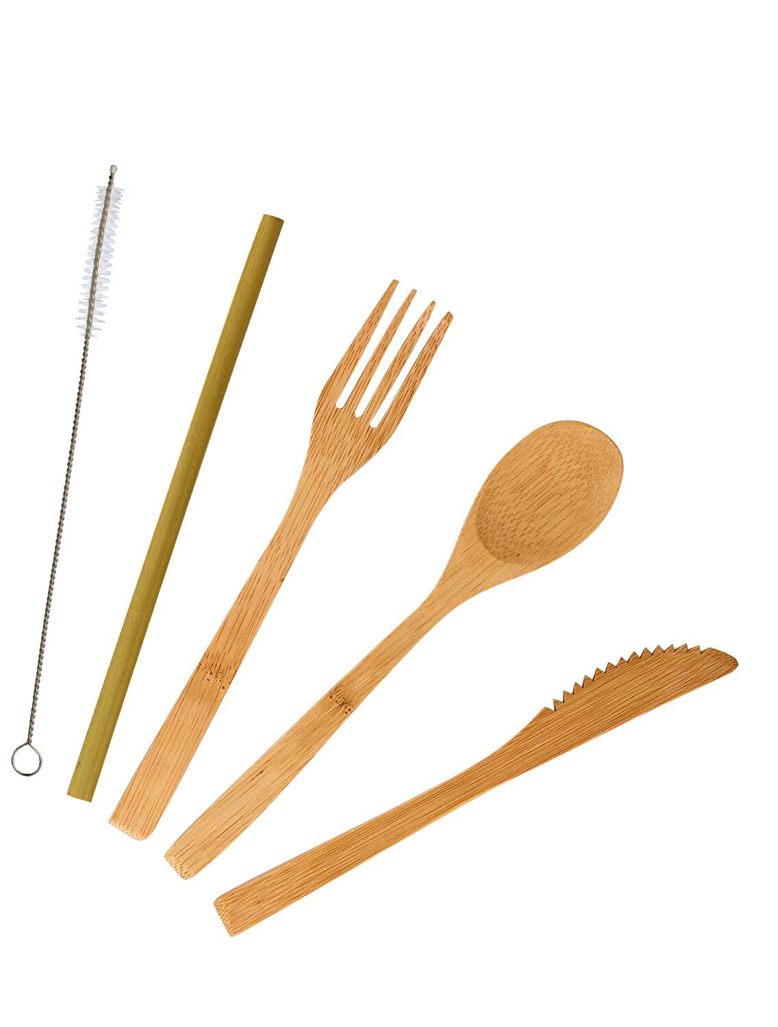 Löffel, Gabel, Messer, Strohhalm, Reinigungsbürste und Tasche mit Karabiner