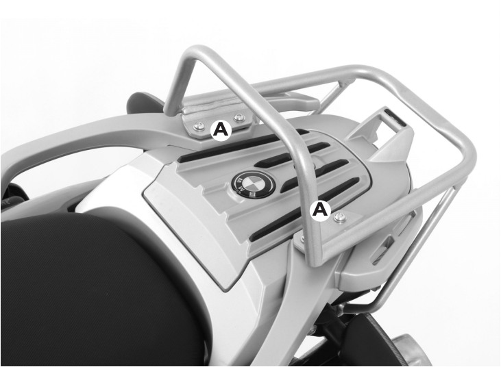 Achtung !Unsere Gepäckbrücke wird auf die Originalbrücke montiert. Darauf können die mit Metall-Halteschloss ausgerüsteten Topcases von HEPCO&BECKER befestigt werden.