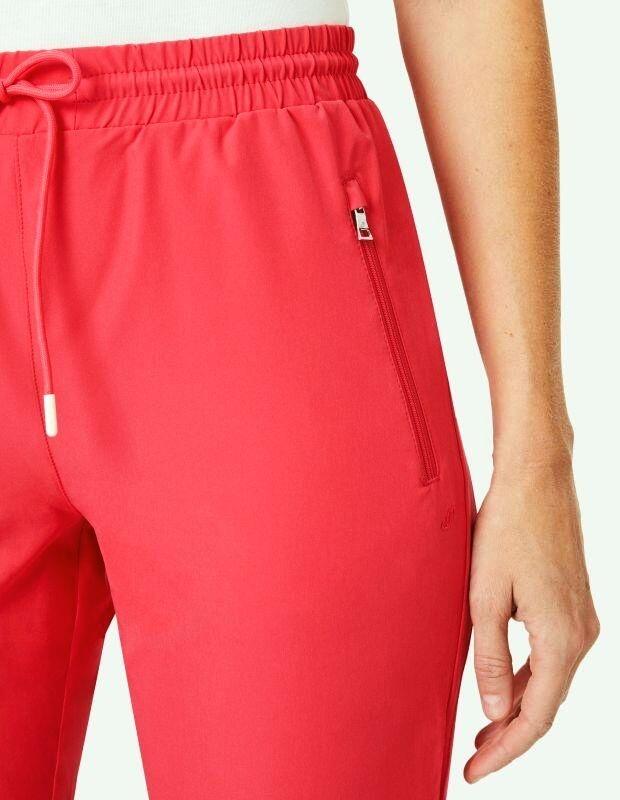 Beinschlitz mit glänzendem Gummiband eingefasst , Komfortbund mit außenliegender Kordel , Leichtes Webmaterial mit Elasthan , Pflegeleicht , Zwei Eingrifftaschen mit Reißverschluss