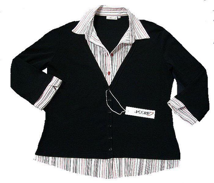Blusenshirt. Sieht aus wie ein Shirt mit einer Bluse drunter - ist aber alles ein Teil. Damit ist man angezogen, durch Stretch im Blusenteil angenehm zu tragen