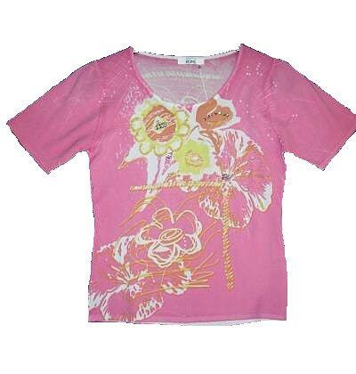 Damen T-Shirt rose Gr. 36/38tolles T-Shirt zu absoluten Spitzenpreis mit schönem Druck und Glitzersteinchen verziert.65% Viskose,35% Polyamide leichte StretchqualitätFarbe: rosa
